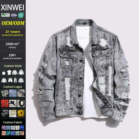 2025 Novo Vintage Lavado Rasgado Design Casual Denim Jacket Streetwear Logotipo Personalizado de Alta Qualidade dos homens Workwear Denim Jacket