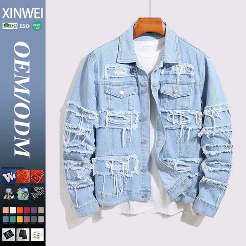 2025 yeni Vintage yıkanmış yırtık tasarım rahat Denim ceket Streetwear özel Logo yüksek kalite erkek giysisi Denim ceket